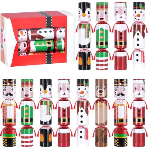 - Includes 12 non-snap Christmas crackers with 6 unique festive designs.
