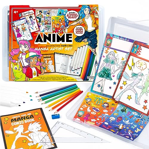 - SET INCLUDES: Various colored pencils, sticker sheets, sharpener, ruler, dual-ended markers, carry case, comic books, and a drawing guide.