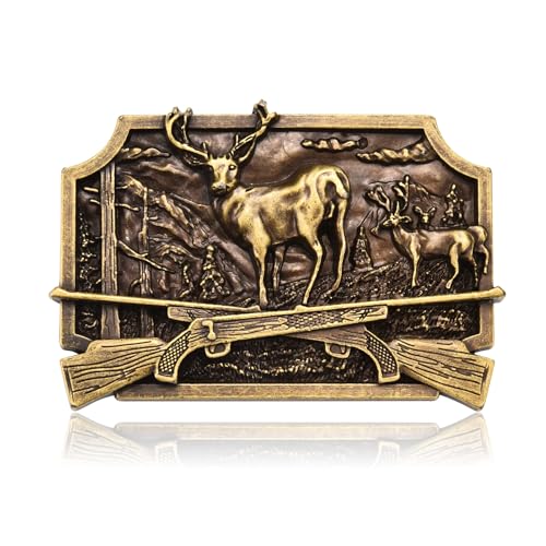 1. KOORASY Vintage Deer Elk Guns Belt Buckle – Western…