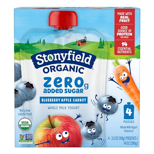 1. Stonyfield Organic Blueberry Apple Carrot Zero Sugar Kids Whole Milk Yogurt Pouches