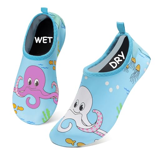Make every step an adventure with these enchanting water shoes! Deedlite has truly captured the magic of childhood by creating water shoes that change color when they touch water. Imagine your child’s delight as their octopus or dinosaur-patterned shoes transform right before their eyes! These aren’t just a treat for the eyes; they’re built for comfort and safety, protecting tiny feet from hot sand, sharp shells, and slippery surfaces, making them one of the best swim colors for kids that offers an interactive twist.