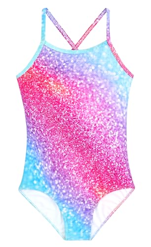 1. Dolxico Girls’ Sparkle Rainbow One-Piece Swimsuit